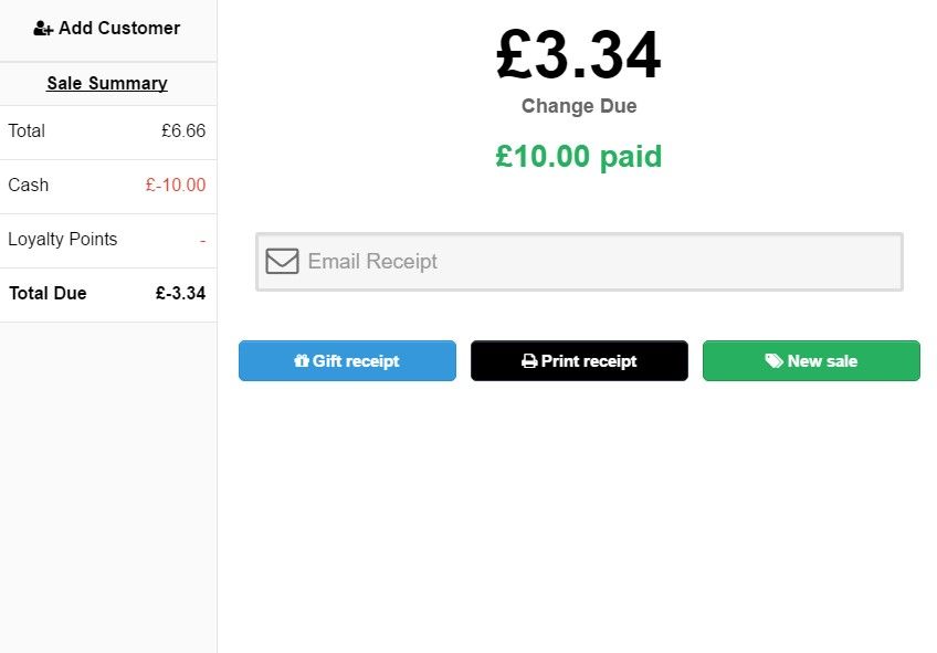 Occasionally you'll have a customer buying a gift for someone. They may want to provide a receipt without the price on it in case the gift needs to be exchanged or for the recipient to use in order to collect the gift. In this instance at the conclusion of the transaction and before you tap on the 'New Sale' button tap on the 'Gift Receipt' button to print off a 'Gift Receipt' as shown below.